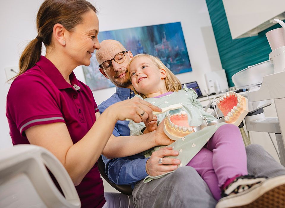 Ab dem Durchbruch des ersten Milchzahns sollten Kinder regelmäßig zum Zahnarzt kommen. Bei uns können sie dabei ganz entspannt bleiben: Unsere Kinderpatienten lernen spielerisch, wie die wertvollen „Beißerchen“ lebenslang gesund erhalten werden.